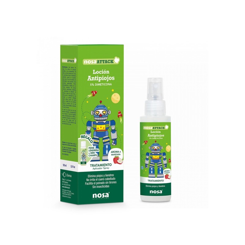 Nosa Attack Loción Antipiojos 5% Dimeticona Aroma Manzana 100ml
