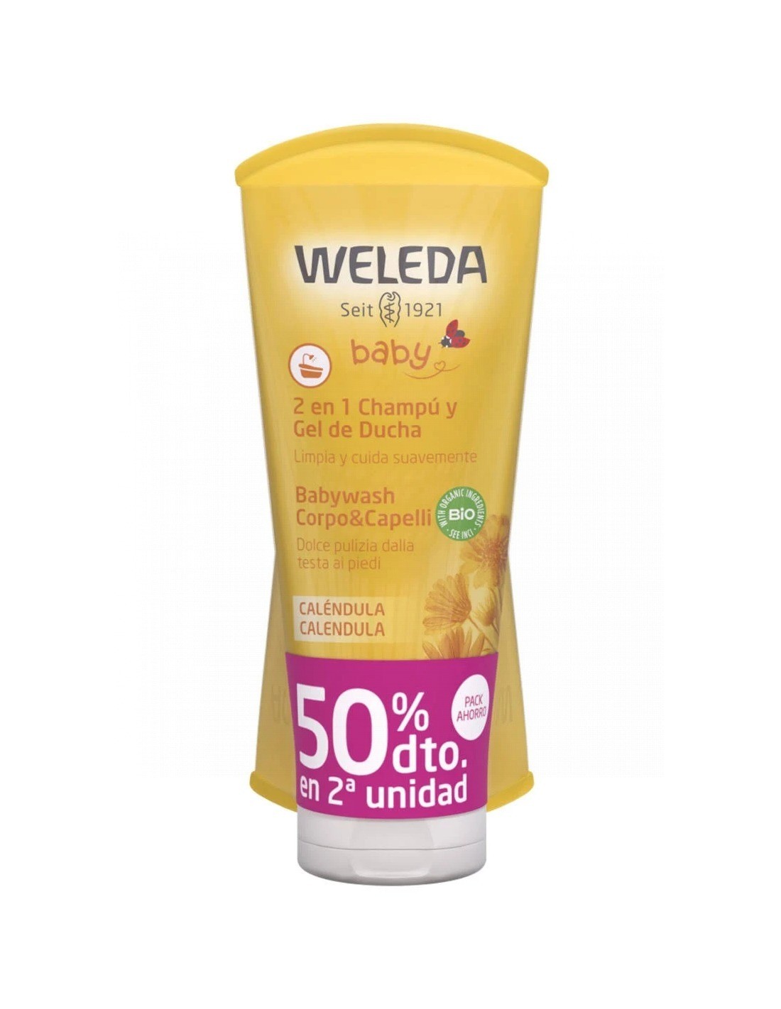 Limpia suavemente piel y cabello. El aceite de sésamo, el aceite de almendra y el extracto de caléndula, todos BIO, mantienen la hidratación de la piel, la protegen de la sequedad y dejan el cabello suave y sedoso. No irritante para los sensibles ojos de los bebés y no tiene jabón, es 100% natural y es el producto ideal para bebés y adultos con piel muy seca y sensible. La alta tolerancia ha sido testada dermatológicamente, incluso en pieles sensibles.