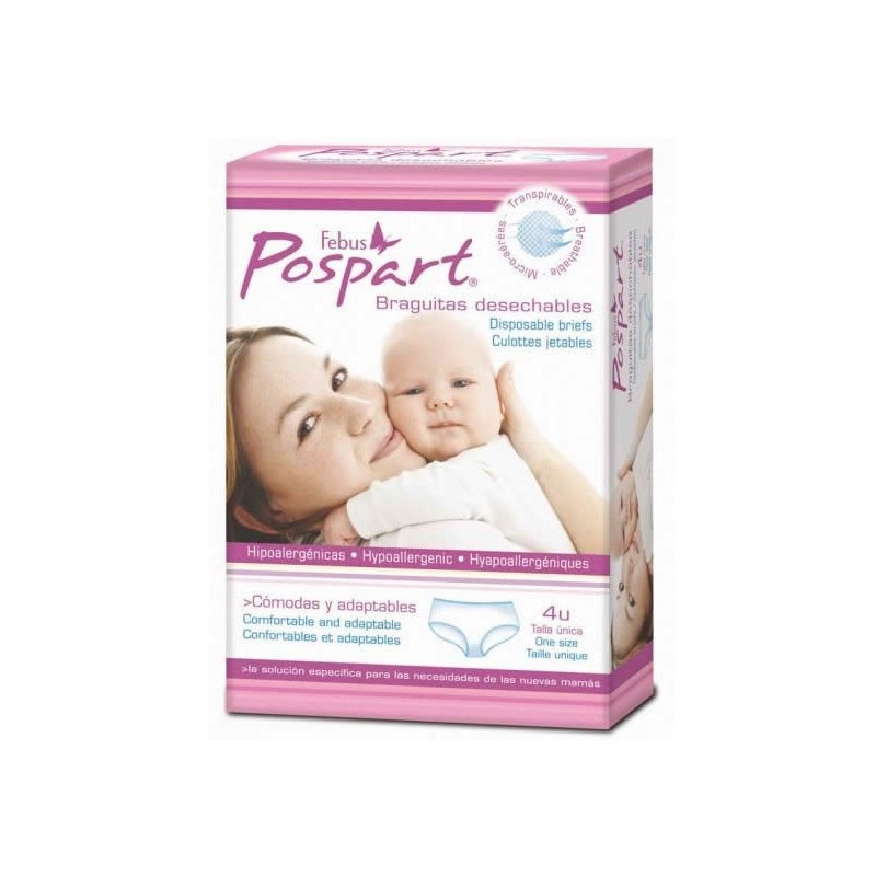 Braguitas Indasec® Pospart desechables han sido diseñadas para los días posteriores al parto, especialmente indicadas para sujetar las compresas Indasec® Pospart primero días.