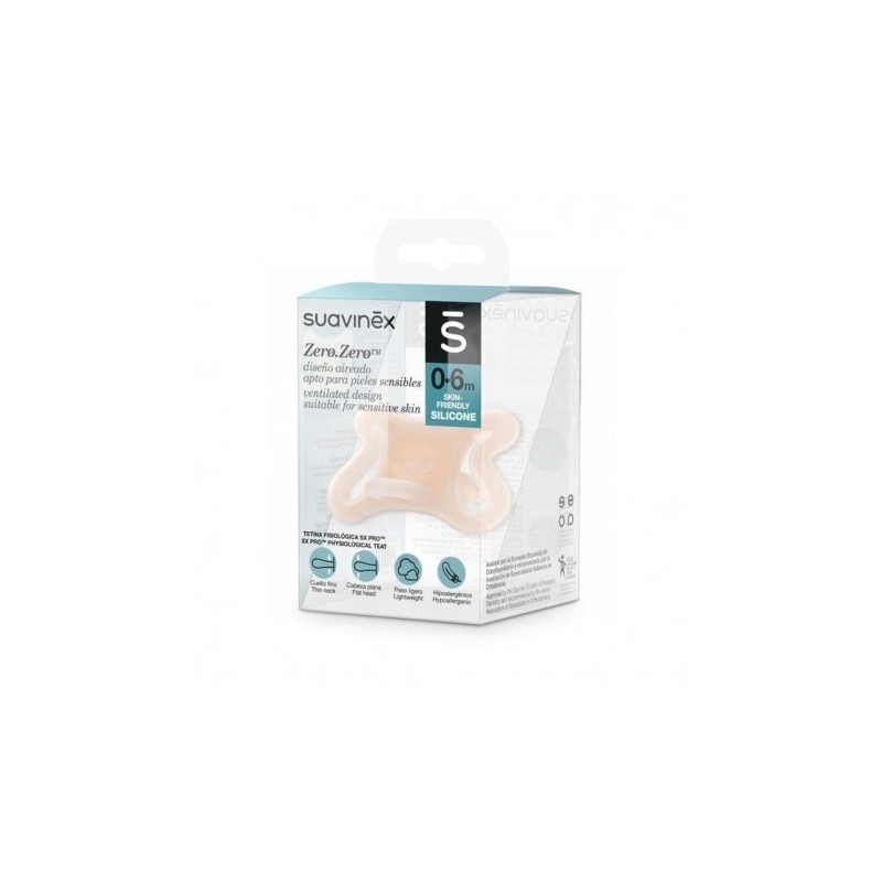 Nuevo chupete Zero. Zero Mini para bebés de 0 a 6 meses, ideal como su primer chupete y especialmente diseñado para bebés de bajo peso, incluso prematuros. Hipoalergénico y apto para pieles sensibles, su diseño aireado reduce el contacto con la piel del bebé. La tetina fisiológica SX Pro, con silicona skin-friendly, es simétrica para respetar la posición natural de la lengua durante la succión. Su tamaño y peso reducidos brindan mayor adaptabilidad a la carita del bebé. Este chupete es compatible con la lactancia materna, minimizando la confusión con el pezón materno. Tetina recomendada por padres.