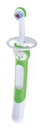 El MAM Training Brush con la característica especial del mango extralargo permite a los adultos ayudar a su bebé a cepillarse los dientes, guiando suavemente el cepillo para asegurarse de limpiar todos los dientes correctamente.